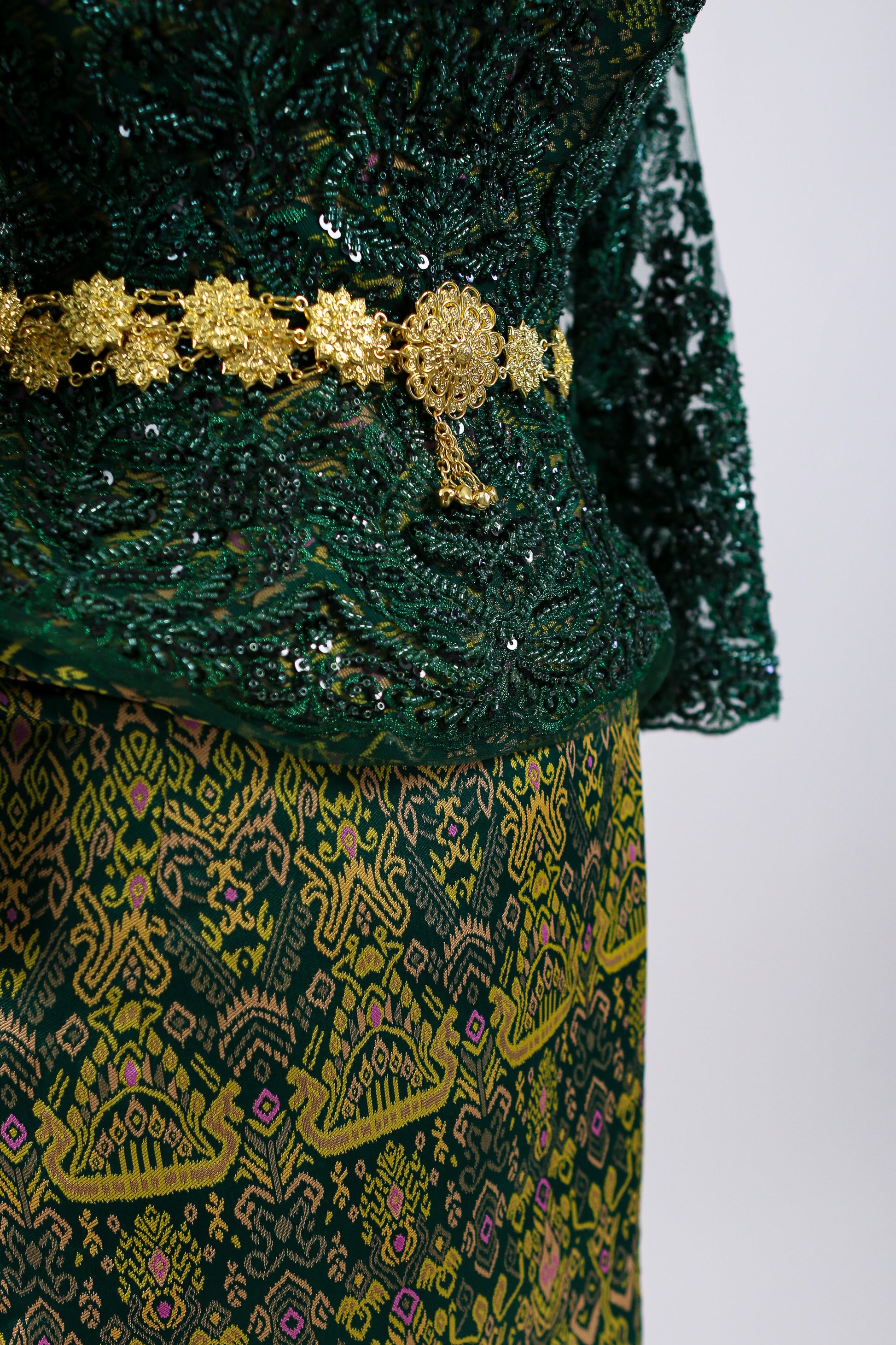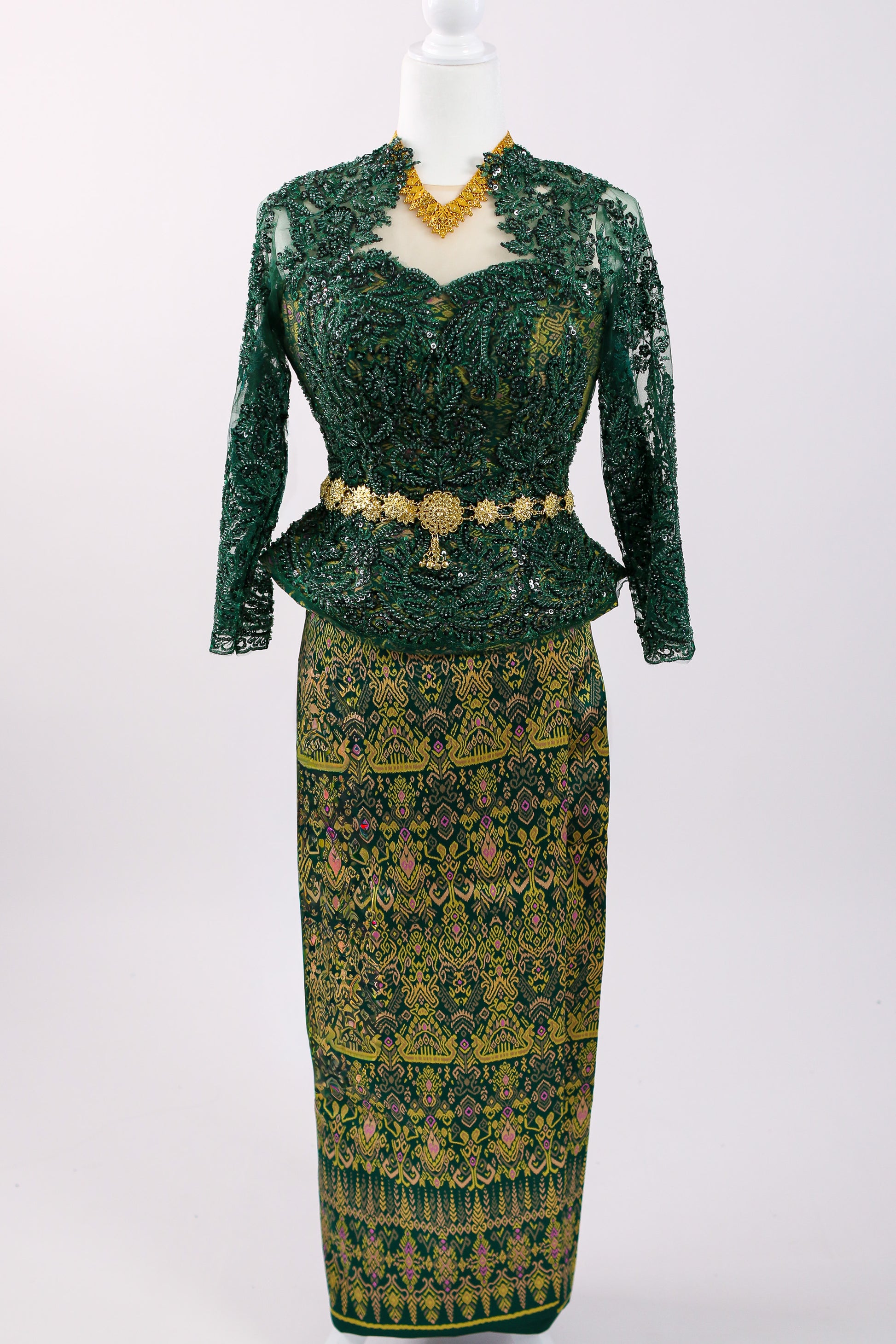 Angkor Emerald Set — Green Lace Top + Pattern Skirt