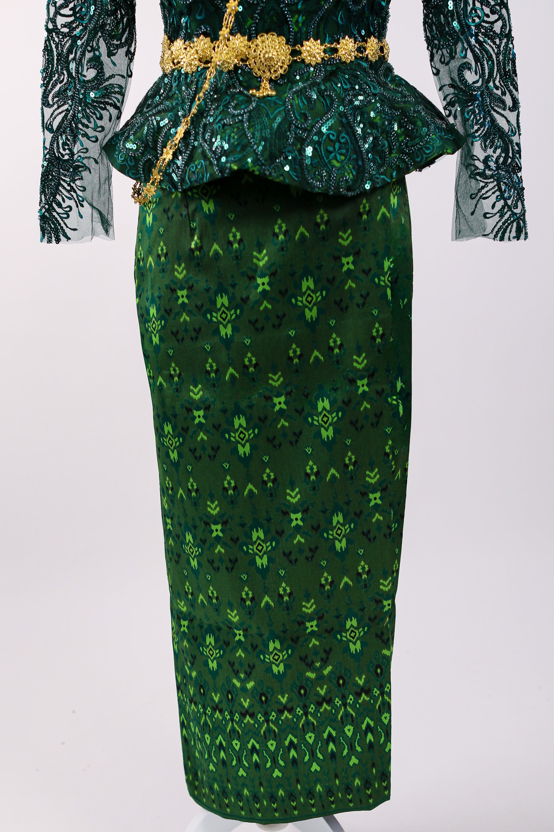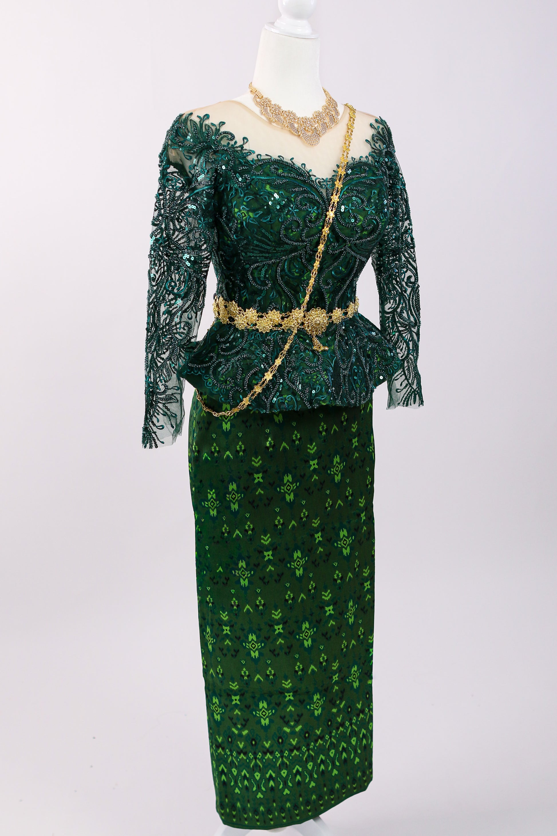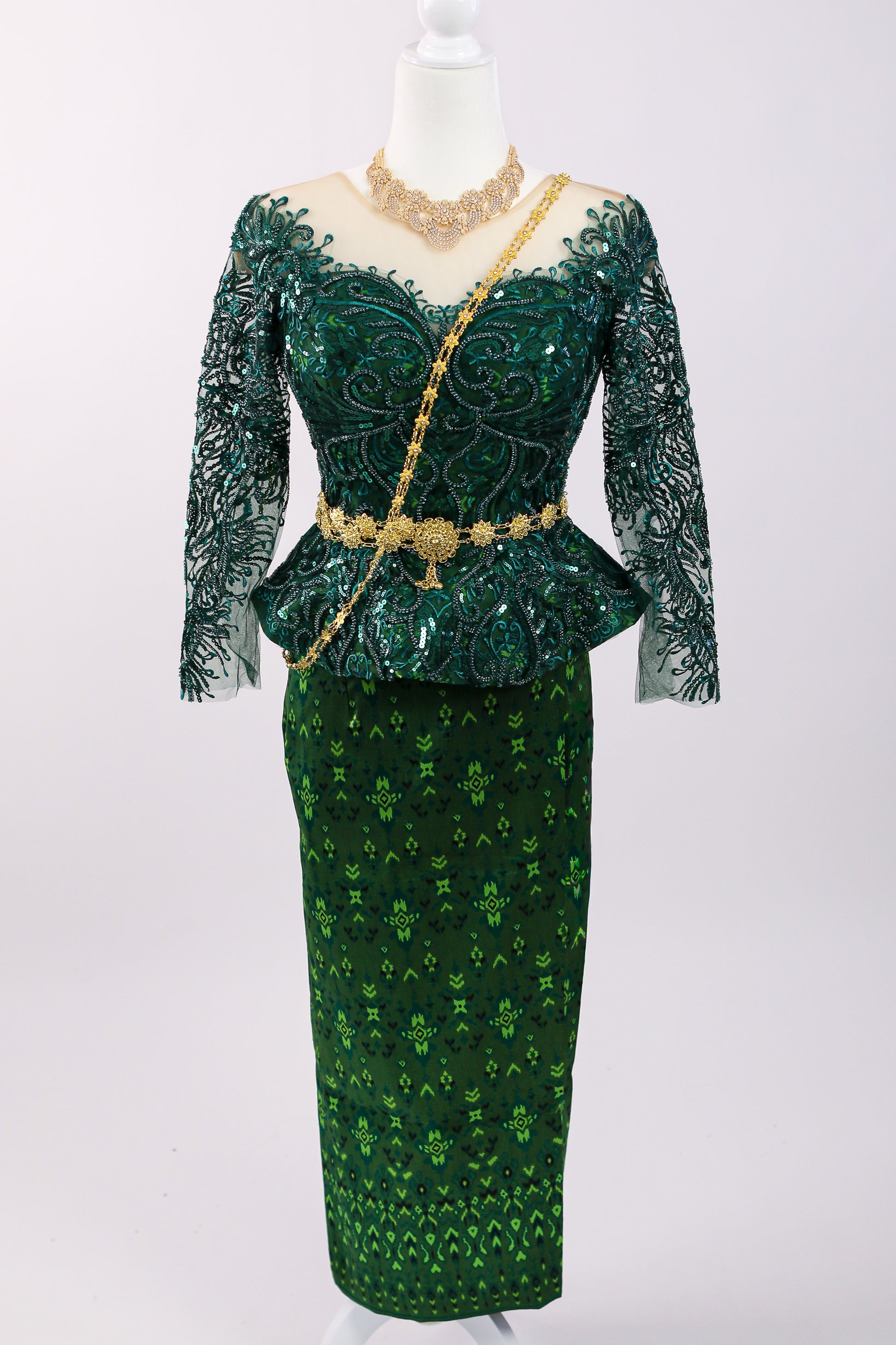 Angkor Emerald Set — Green Lace Top + Pattern Skirt