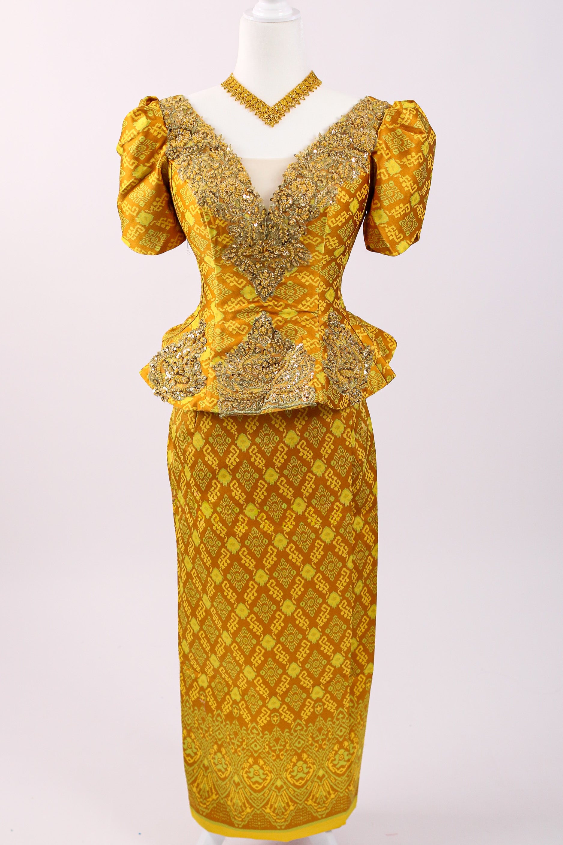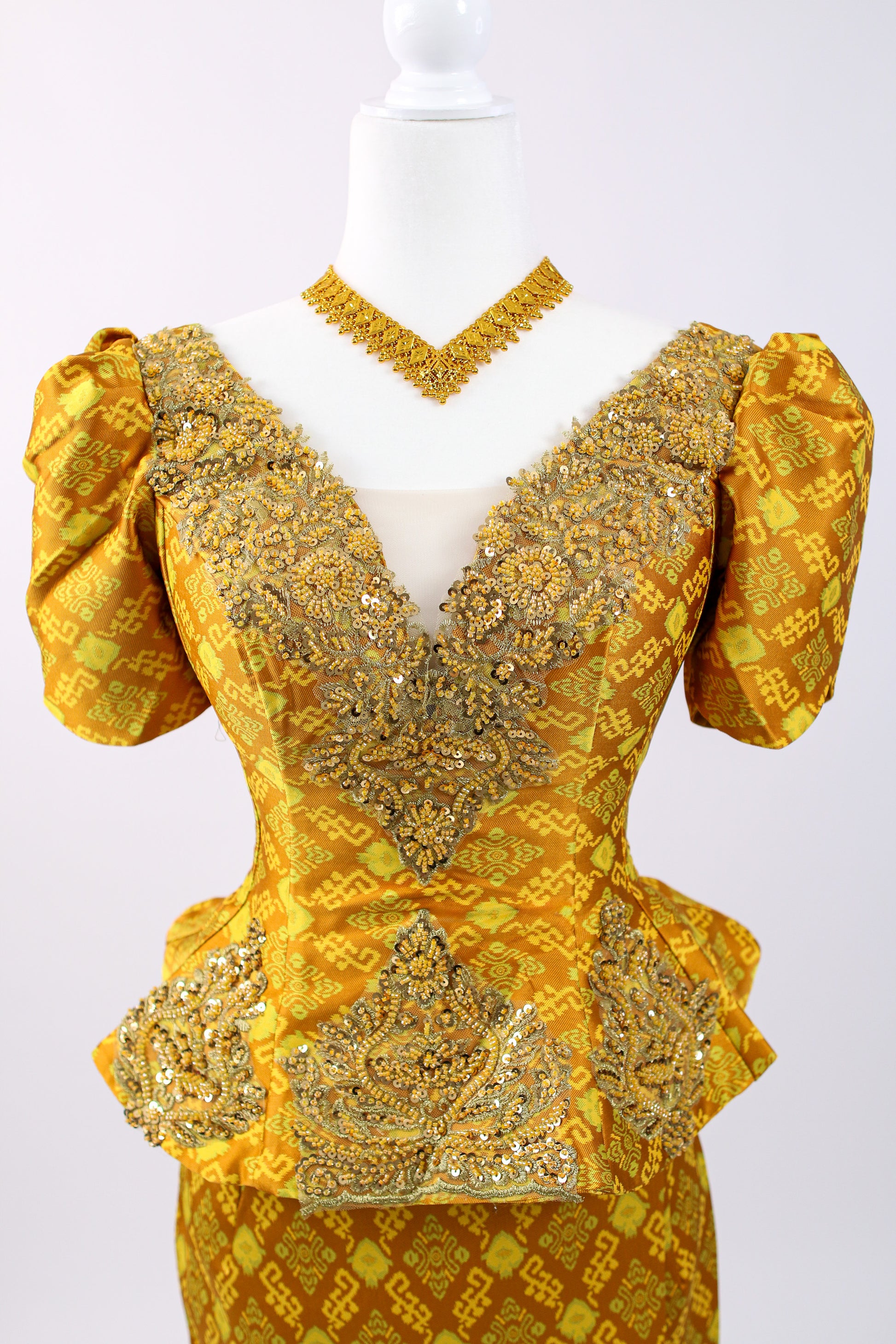 Ancient Gold Set — Beaded Lace Top + Pattern Skirt