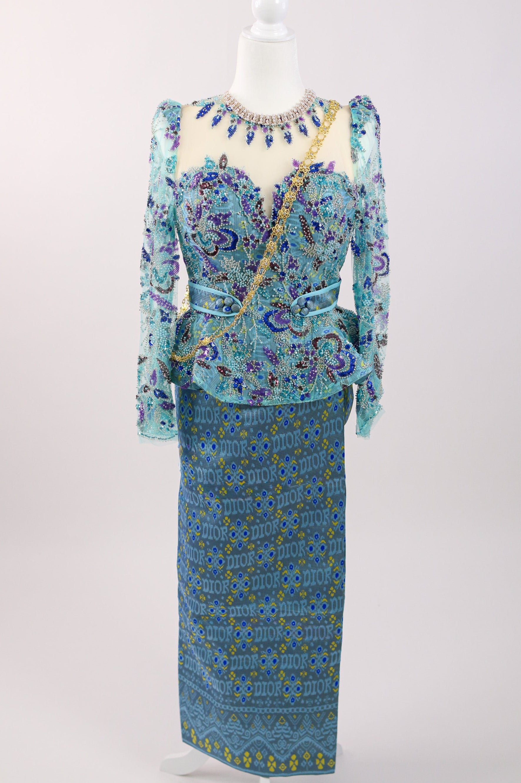Angkor Emerald Set — Green Lace Top + Pattern Skirt