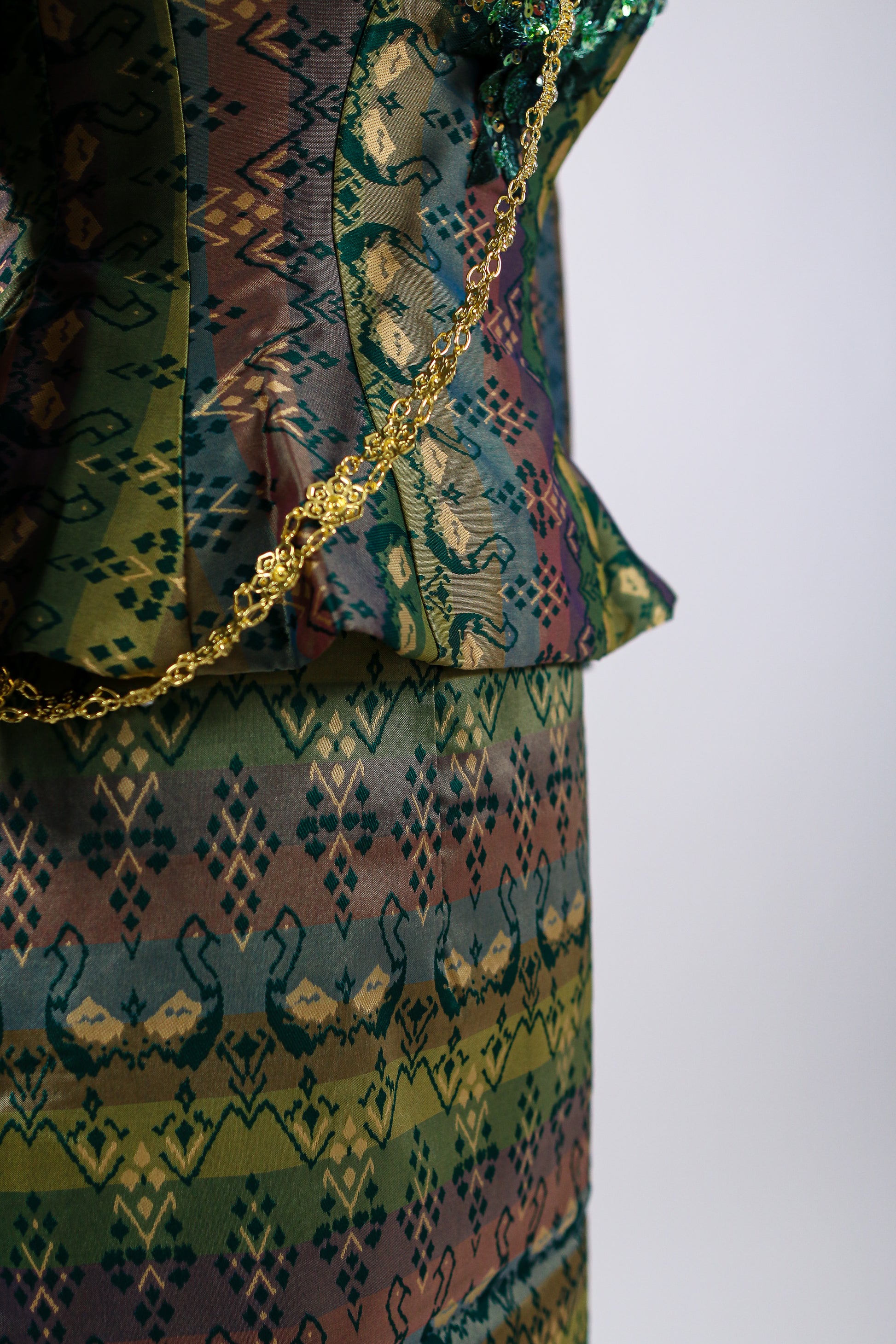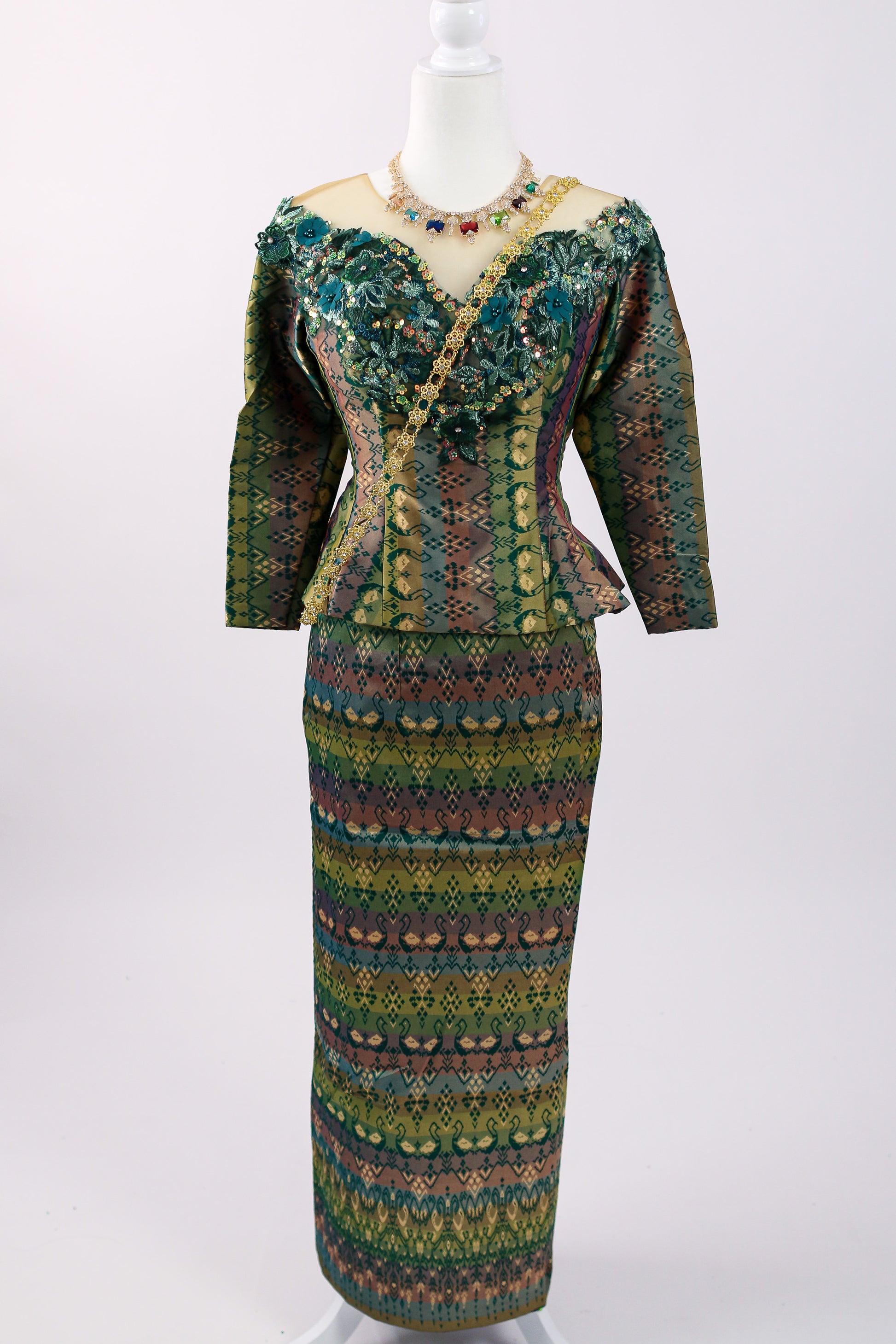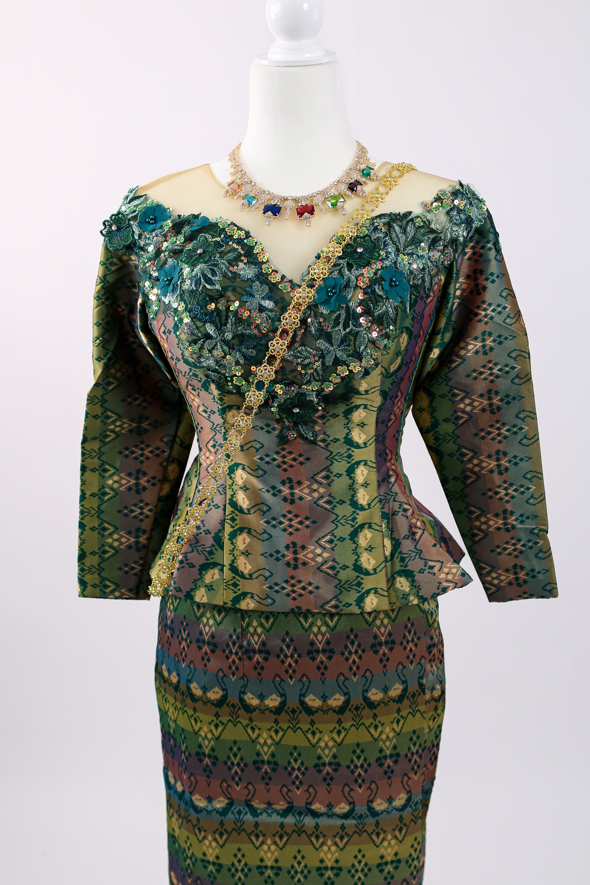 Angkor Emerald Set — Green Lace Top + Pattern Skirt