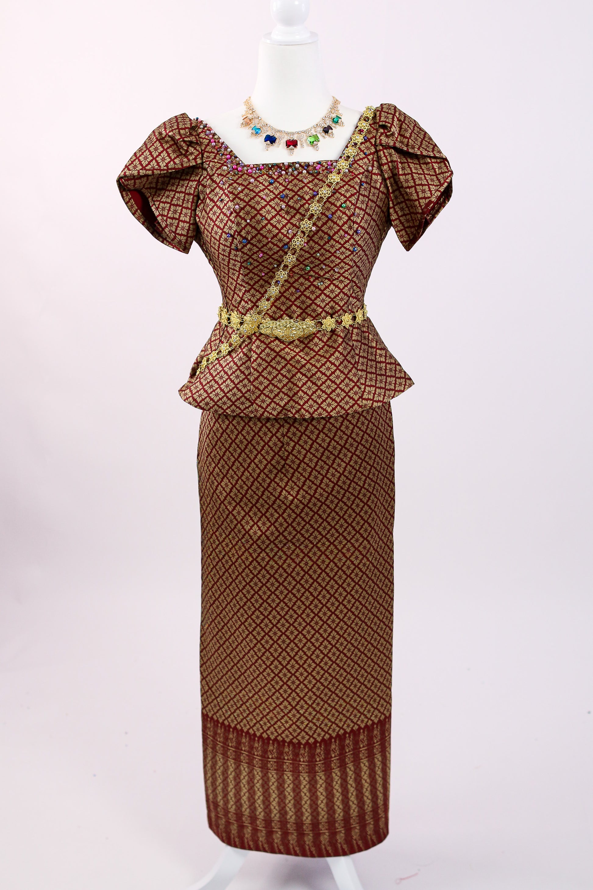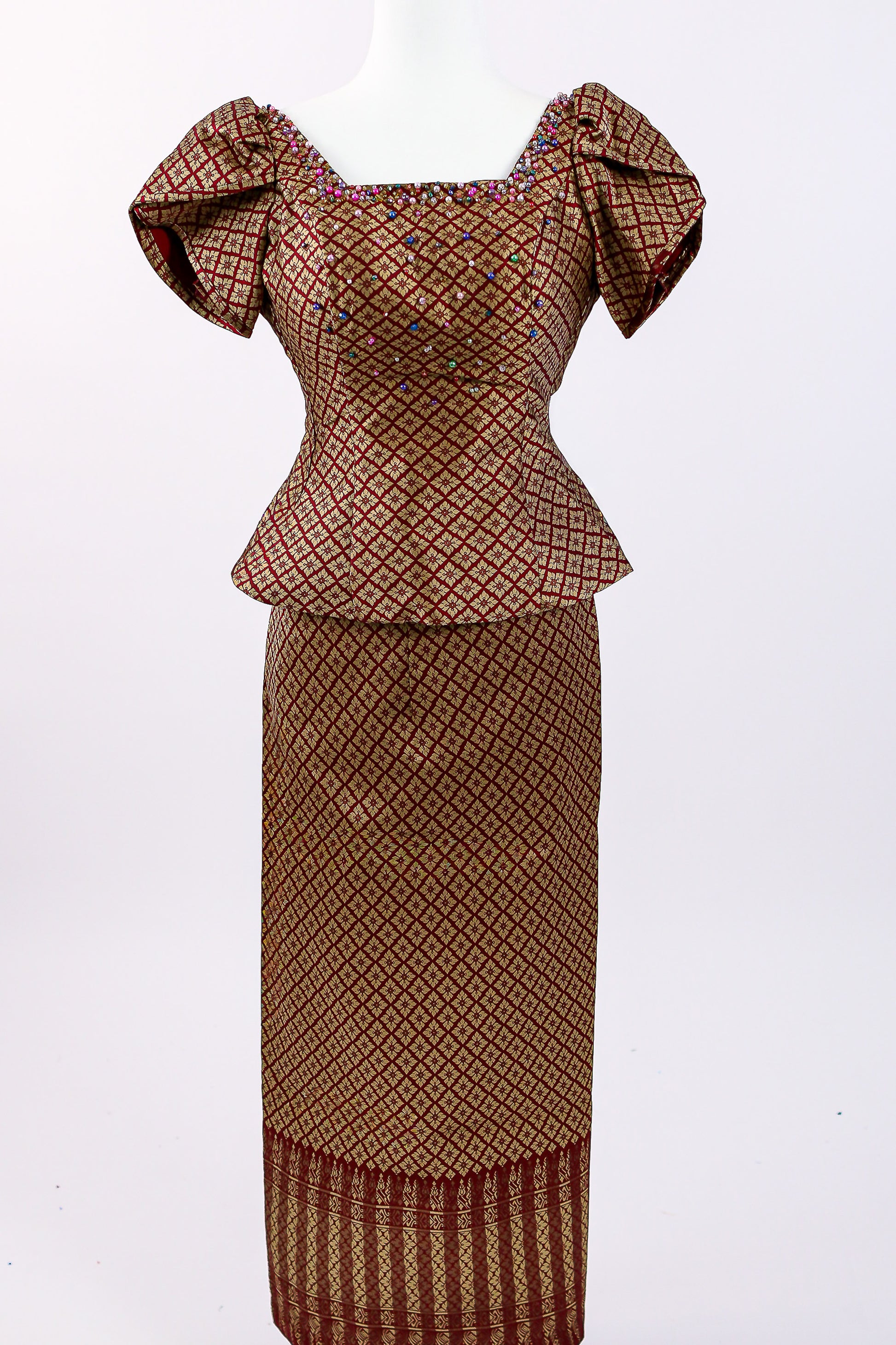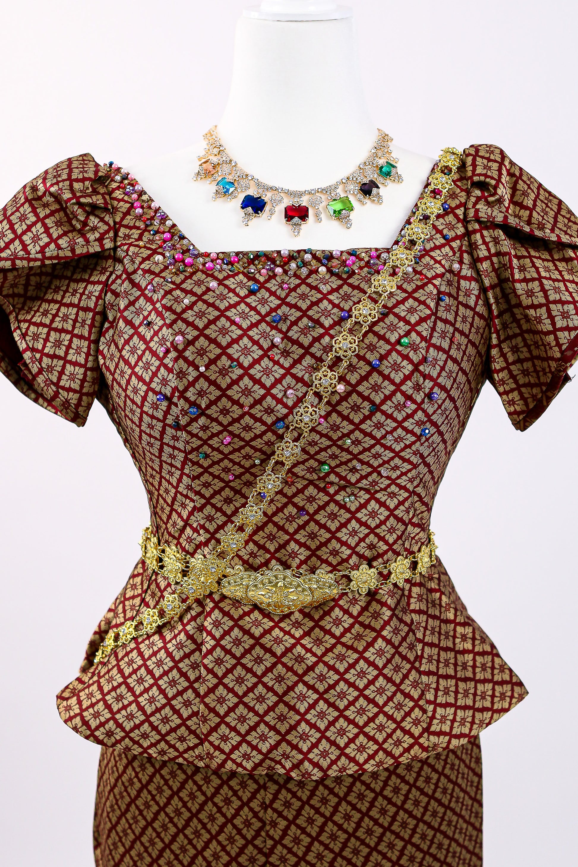 Maroon Royale Set — Brocade Top + Pattern Skirt