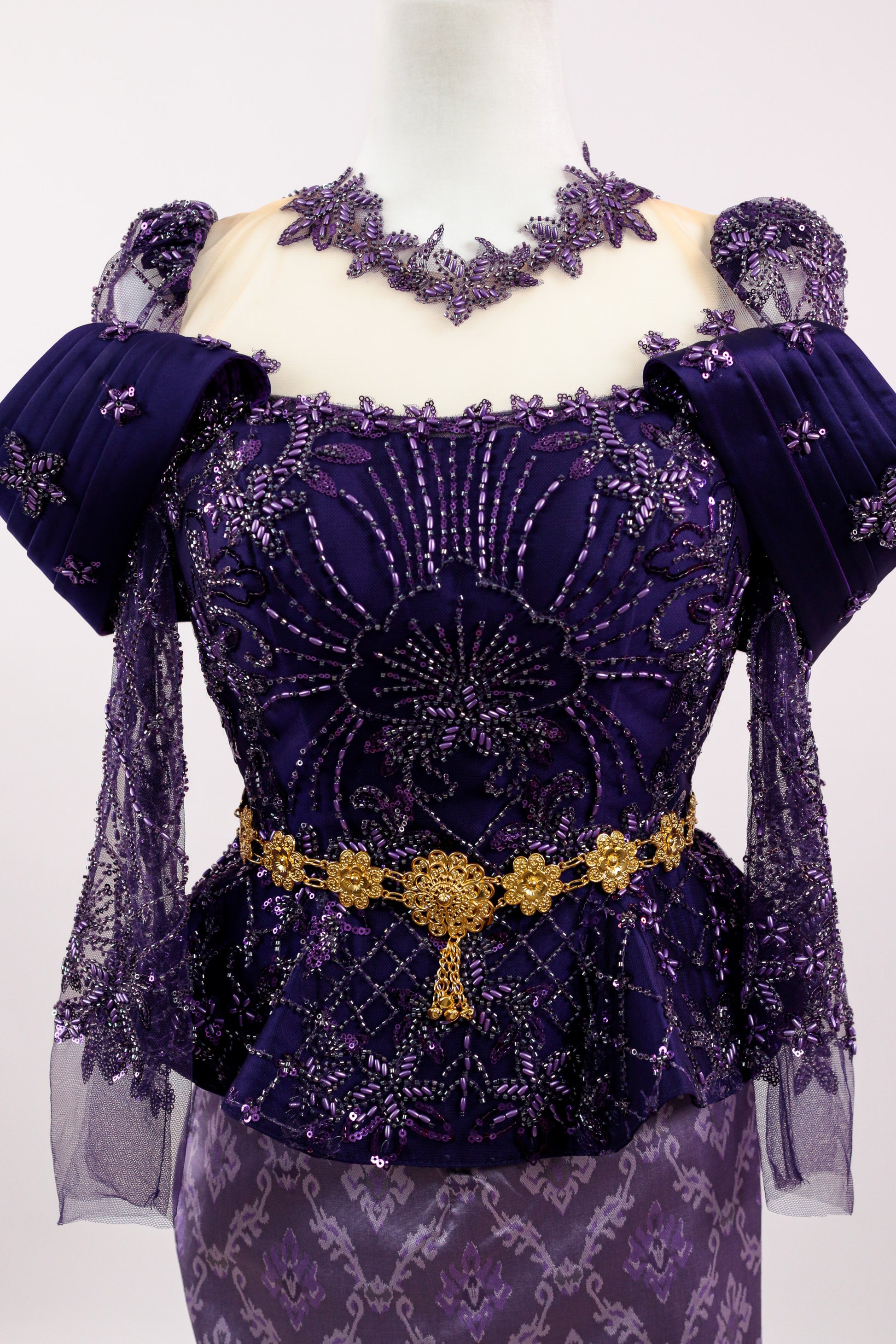Violette Set — Purple Beaded Lace Top + Pattern Skirt
